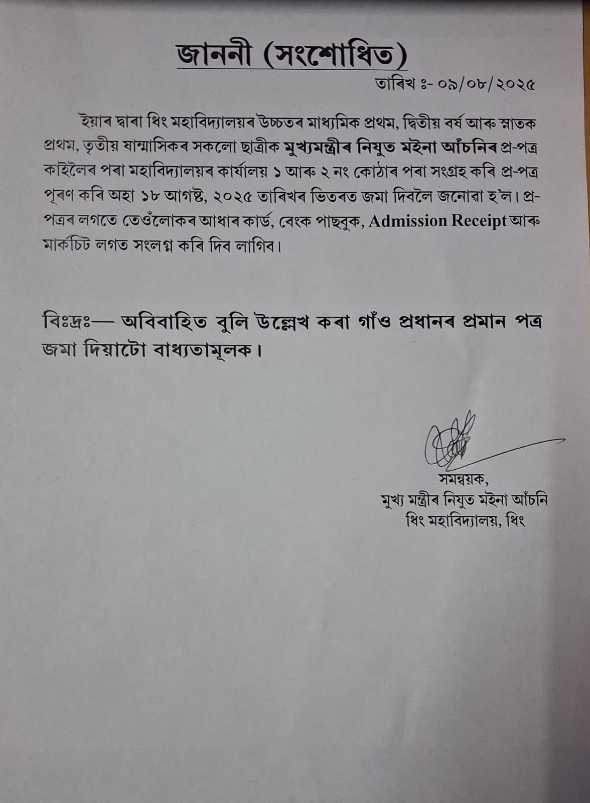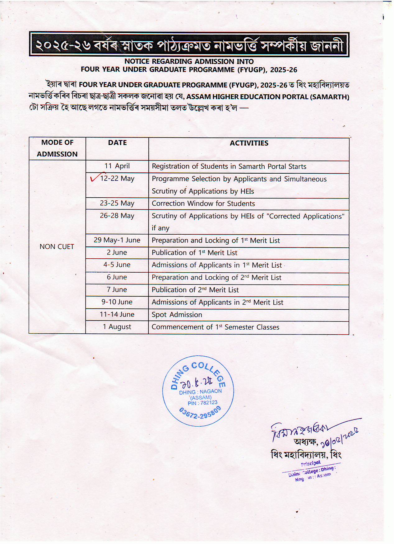 Admission and subject related queries contact with College authority on working days.